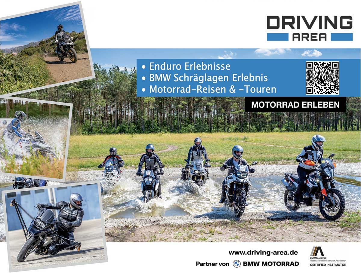 Organisation & Durchführung der Tour erfolgt durch das erfahrene Team der Driving Area. Der Preis beträgt 560 € mit dem eigenen Motorrad bzw. ab 690 € mit einer Miet-BMW (inkl. Vollkasko und ggf. Sturzteile). Buchung ab sofort unter www.driving-area.de. Infos gibt’s auch telefonisch unter 05376-9771150.